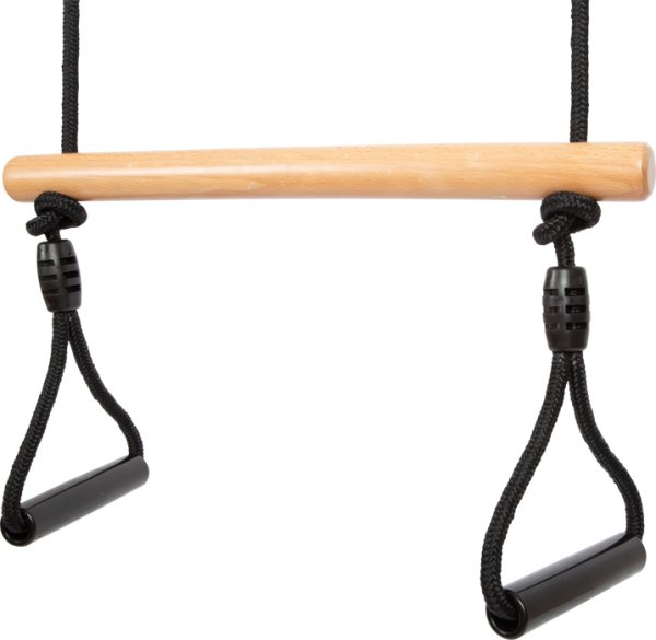 Houpání nebo gymnastika? S tímto setem zvládnete obojí. Tento inovativní set kombinuje klasickou houpačku s gymnastickými kruhy, což poskytuje více možností pohybu a zábavy. Zatímco trapézovou tyč lze použít jako sedák nebo gymnastickou tyč, gymnastická madla nabízejí malým akrobatům možnost vyzkoušet si, co chtějí. Ideální pro začátečníky v gymnastice. Robustní lana jsou výškově nastavitelné. Kovové kroužky umožňují houpačku rychle zavěsit i sundat. Trapéz je vyroben z robustního masivního dřeva, lana z materiálu odolného vůči povětrnostním vlivům, ideální také pro venkovní použití. Kombinace houpačky a s gymnastickými kruhy trénuje ovládání těla, sílu a rovnováhu. Interakce vysoce kvalitního masivního dřeva a elegantních, černých plastových lan dělá z multifunkční houpačky opravdový poutač uvnitř i venku. Hlavní vlastnosti: nastavitelná lanakruhy mají plastová madlaz materiálu odolného vůči povětrnostním vlivůmtrénuje ovládání těla, sílu a rovnováhuzábava vhodná pro hraní doma i venku