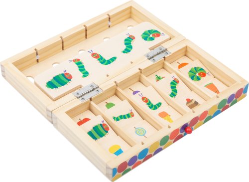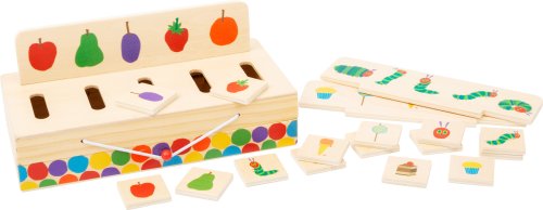 Seřaďte obrázky s různými motivy. V této šikovná, 19 dílné třídící hře ze dřeva s barevným designem budete rozpoznávat tvary a barvy. Dřevěné desky potištěné motivy se jednoduše umístí na otvor ve víku, takže je lze přiřadit k odpovídajícím motivům. Krabici lze snadno uzavřít elastickou páskou a dřevěným knoflíkem. Během cestování se tedy nic nevytratí. Hlavní vlastnosti: cestovní hravkládačka podporuje v rozpoznávání tvarů a barev19 dílků