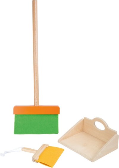 Tato dětská sada promění každé dítě v úklidového experta. Smeták a smetáček mají plstěné prvky, které zachytí všechno smetí. Smeták, lopatka i smetáček jsou vyrobeny z pevného dřeva a jsou opravdu odolné. Rozměry koštěte: 57 x 20 x 3 cm Rozměry lopatky: 19 x 15 x 10 cm