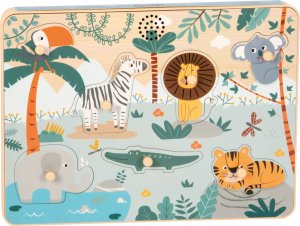 Nechejte děti rozpoznávat tvary i zvířátka a bavit se jejich roztomilými zvuky. Barevné dřevěné puzzle se zvuky promění učení v opravdové dobrodružství. Sedm zvířátek - lev, tygr, slon, zebra, koala, tukan a krokodýl - čeká, až je děti umístí na správné místo. Jakmile některé zvednou, puzzle je odmění realistickým zvukem zvířete. Kombinace hry, zvuků a barev rozvíjí vnímání, logiku i motoriku.Snadno je přitom lze napodobováním zvuků vést hravým způsobem k prvním slůvkům. Dřevěné dílky jsou velikostí i oblými tvary přizpůsobeny k manipulaci malými dětskými ručičkami, jsou příjemné na dotek, a pomáhají tak stimulovat hmat. Hlavní vlastnosti: základna a 7 dílků puzzle ve tvaru zvířatmotivující zvířecí zvukové efektyvyrobeno ze 100% certifikovaného dřeva FSC® trénuje trpělivost, vytrvalost a soustředěnítrénuje koordinaci ruka-oko2xAAA 1,5 V baterie - nejsou součástí balení Značka a certifikát FSC® (Forest Stewardship Council) zaručuje, že dřevo, ze kterého byl produkt vyroben, nebylo vytěženo nelegálně a pochází z lesů obhospodařovaných šetrným či přírodě blízkým způsobem, ve kterém jsou dodržovány přísné environmentální a sociální požadavky. Značka FSC® na výrobku znamená, že svým nákupem pomáháte chránit lesy a podporujete šetrné, odpovědné či přírodě blízké hospodaření, díky kterému jsou naše lesy stabilnější, zdravější, mají přirozenou druhovou skladbu a lépe odolávají negativním následkům klimatických změn.