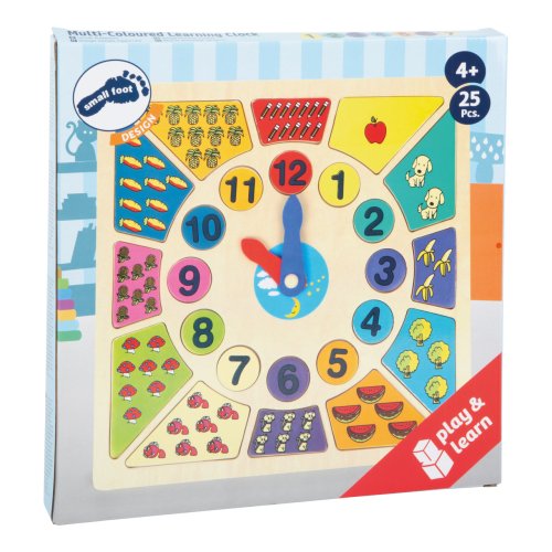 Půl deváté? Za deset deset? S touto barevnou hračkou se děti jednoduše naučí poznávat čas a užijí si při tom spoustu zábavy. Dřevěné dílky s číslicemi můžete z hrací desky vyjmout a poté opět vložit zpět, ale se správně seřazenými časy a množstvím. Skvělá hračka pro předškolní i školní děti, která jim pomůže s učením čísel. Bude se hodit do každého dětského pokoje. Hlavní vlastnosti: dřevěná vkládací výuková hračkanaučí děti poznávat čas i množstvítrénuje zručnost