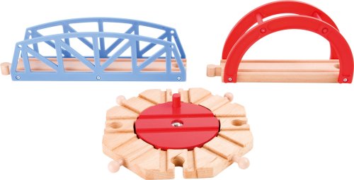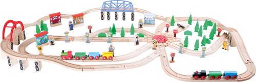 S touto dřevěnou železniční soupravou ožije život na kolejích. Robustní dřevěné koleje a výhybky umožňují vagonům bezpečně dojet do cíle. Krajinu doplňují stromy a různé dřevěné budovy, mosty, postavičky, lokomotivy a vagóny. Hlavní vlastnosti: Materiál: dřevoObsahuje 140 ksvhodné od 3+