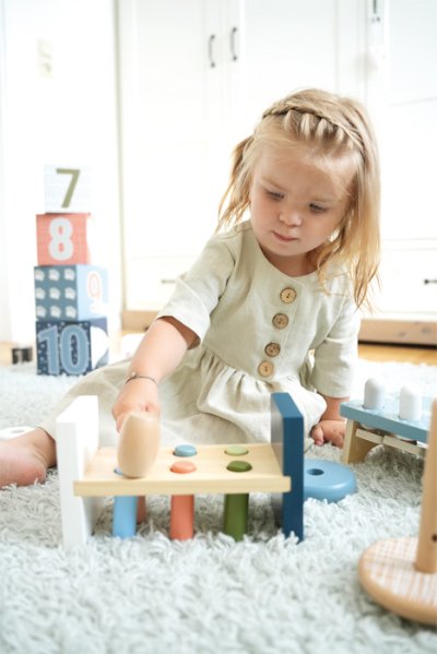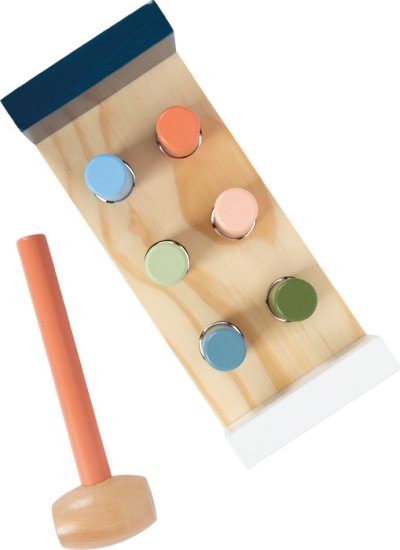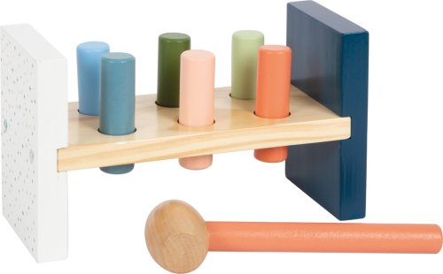 Tato motorická klasika vyrobená z certifikovaného dřeva FSC® přináší do dětského pokoje radost z klepání. Dřevěná hra zatloukačka vybízí děti, aby si vyzkoušely svou sílu tím, že pomocí kladívka zarazí dřevěné válce vyčnívající z lavice. Jakmile jsou všechny válce dole, lavici lze snadno převrátit a zábava začíná znovu. Boční potisk ledního medvěda odrážejícího se na vodní hladině také dává vizuální smysl, když je lavice obrácena a hraje se vzhůru nohama. Skvělá zábava pro všechny malé siláky. Hra, která hravě ilustruje principy příčiny a následku. Trénuje koordinaci ruka-oko a motoriku. Moderní barevné provedení v jemných arktických barvách dělá z motorické hračky dekorativní poutač. Hlavní vlastnosti: rozvíjí koordinaci ruka-okorozvíjí motoriku a obratnostrobustní a odolné provedenípodněcuje kreativní a nápaditou hru Značka a certifikát FSC® (Forest Stewardship Council) zaručuje, že dřevo, ze kterého byl produkt vyroben, nebylo vytěženo nelegálně a pochází z lesů obhospodařovaných šetrným či přírodě blízkým způsobem, ve kterém jsou dodržovány přísné environmentální a sociální požadavky. Značka FSC® na výrobku znamená, že svým nákupem pomáháte chránit lesy a podporujete šetrné, odpovědné či přírodě blízké hospodaření, díky kterému jsou naše lesy stabilnější, zdravější, mají přirozenou druhovou skladbu a lépe odolávají negativním následkům klimatických změn.