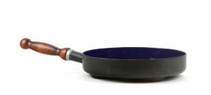 Smaltovaný lívanečník s dřevěnou rukojetí Belis. Průměr 24 cm.
