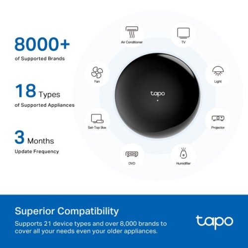 – Pripojí a ovláda infračervené zariadenia a senzory Tapo a integruje ich do ekosystému Matter.*Ešte väčšie pohodlie vďaka inteligentným akciám Tapo