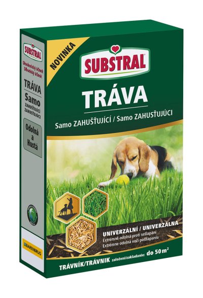 SAMOZAHUŠŤUJÍCÍ TRÁVY SUBSTRAL Travní směs obsahuje nově vyšlechtěný druh jílku vytrvalého (Lolium Perenne RPR), který má vysokou schopnost regenerace. Díky této vlastnosti získáte odolný a hustý trávník, který při správné péči (hnojení, provzdušňování, zavlažování apod.) bude velmi pěkný po mnoho let. Vysoká odolnost proti zátěži a sešlapávání díky samozahušťujícímu horizontálnímu nadzemnímu pletivu trav, které vytváří hustý trávník. Díky tomu trávník zvládá vysokou zátěž a současně dekorativní nároky. Jak to funguje? Volná místa v trávníku zaplňuje jílek vytrvalý horizontálním rozrůstáním se od kořenů.