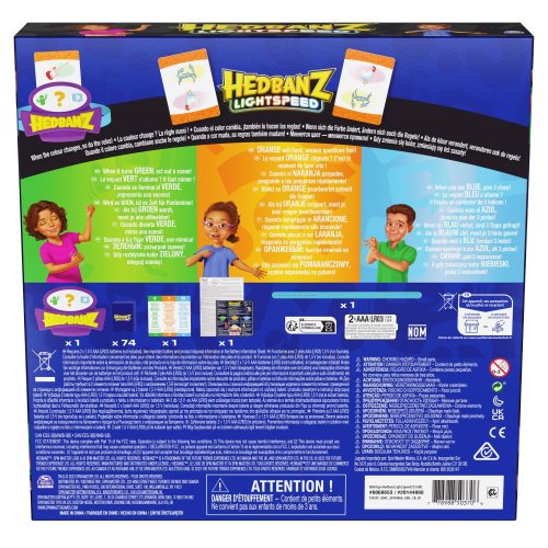 Rychlá hádací hra „Co jsem?“ je zpátky z Hedbanz Lightspeed! Hedbanz od Spin Master Games je zábava pro celou rodinu. Hraje oblíbenou hru s otázkami rychlostí světla! Pravidla se mění bleskově, protože vaše elektronická čelenka přepíná mezi třemi barvami. Uhodněte maximum karet, než z čelenky začne hrát hudba, která znamená, že váš čas vypršel! Hráč, který nasbíral nejvíc bodů, vyhrává! Když svítí ZELENÁ, hrajete scénku! ORANŽOVÁ znamená rychlost světla: odpovídejte co nejrychleji! Když uvidíte MODROU, je čas na tři nápovědy! Tuto jedinečnou elektronickou čelenku si zamilujete. Protože má SVĚTLA a ZVUKY, vyžaduje 2 baterie AAA (nejsou součástí balení). Na kartách jsou vtipné ilustrace, jako třeba kyselá okurka nebo elektrická kytara. Hedbanz je nezbytným doplňkem vaší sbírky deskových her pro děti ve věku 8–12 let, ale pobaví každého od 6 let výš. Je vhodná pro 2–6 hráčů a poslouží vždy, když budete potřebovat hračky pro dívky ve věku 6–8 let, rodinné deskové hry nebo hry pro děti. Hedbanz je společenská aktivita pro celou rodinu, která pobaví všechny generace. Je to klasická hra s hádáním obrázků, která je známá už roky! Ať už hledáte deskové hry pro děti ve věku 6–8 let nebo jakékoliv zábavné hry, tato nová edice Hedbanz vás jednoznačně pobaví – když se změní barva, mění se i pravidla! Připravte se na světla, barvy a akci s Hedbanz Lightspeed! Spin Master přináší dětem zábavu v podobě hraček a her včetně hraček pro batolata, hraček pro dívky a deskových her. Sbírejte své oblíbené plyšáky, antistresové hračky, auta na dálkové ovládání, akční figurky, panenky a příslušenství a mnoho dalšího. V našem katalogu najdete ideální dárek ke každým narozeninám, od speciálních dárků pro děti a batolata až po dárky pro ty, kteří zůstávají mladí duchem. Pokud chcete ještě víc, podívejte se na vzdělávací hračky pro děti, hračky do bazénu, venkovní hry a monster trucky vhodné pro každé roční období. Buďte kreativní s výtvarnými sadami, stavebnicovými hračkami a autíčky na dálkové ovládání nebo skládejte skládačky pro dospělé a hrajte karetní hry. Roztočte to na pískovišti ještě dnes se Spin Masterem!