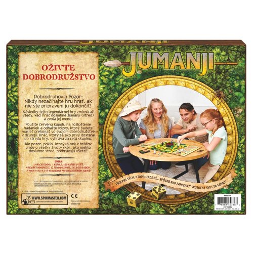 Známá hra v nové podobě. Hoďte osmistrannou kostkou a uvidíte, co vás čeká. Karta nebezpečí vám s pomocí dekodéru pomůže rozluštit tajnou zprávu, zachraňte se před koncem světa. Všichni hráči závodí s časem, aby přežili. Jinak vás a vaše spoluhráče džungle porazí. Hra je plně lokalizovaná do slovenského jazyka. Obsahuje: 1 hrací desku, 4 barevné figurky, 1 figurku nosorožce, 1 přesýpací hodiny, 1 číselnou hrací kostku, 4 kostky záchrany, 30 karet nebezpečí, 1 dekodér, 1 návod. Hra pro 2-4 hráče od 8 let.