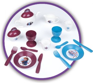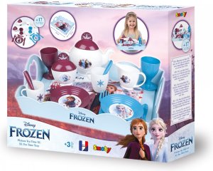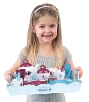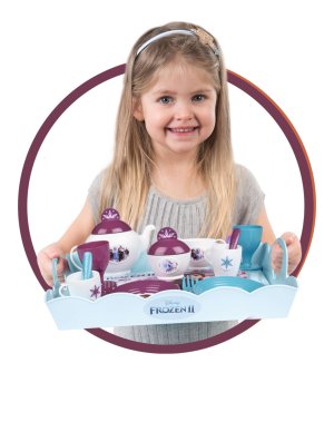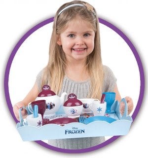 Souprava pro servírování čaje s tácem s motivem princezen z filmu Ledové království 2. Obsahuje 17 ks příslušenství: hrníčky, pohárky, talířky, příbor, konvičku na čaj s pokličkou, cukřenku s pokličkou a konvičku na mléko. Rozměry tácu: 34 x 27 x 8,5 cm.