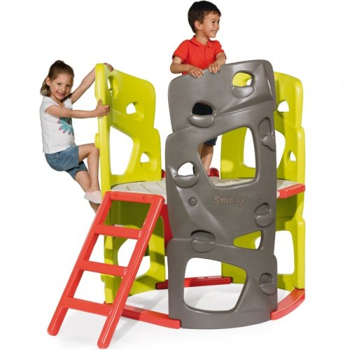 Dětská herní soustava na zahradu se spoustou aktivit. Vyrobeno z kvalitního plastu, který je odolný proti UV záření. Hřiště obsahuje skluzavku o délce 150 cm, žebřík, tři lezecké stěny a horní plošinu na hraní. Rozměry dětského hřiště: 230 x 143 x 140 cm. Vhodné pro děti od 2 let.