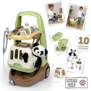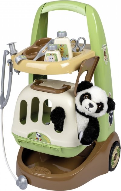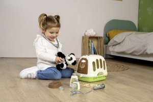 Díky kolečkům ho převezete všude po domě. K léčbě vašich malých pacientů máte k dispozici bohaté příslušenství. Součástí je rozkošná plyšová panda. Po odstranění horní části, lze přepravní klec použít jako veterinární kufřík. Díky kufříku 2v1 můžete přepravovat veškeré své lékařské vybavení a poskytovat pomoc. Dvířka přepravního boxu mají otvor, abyste viděli pandu, když je uvnitř.