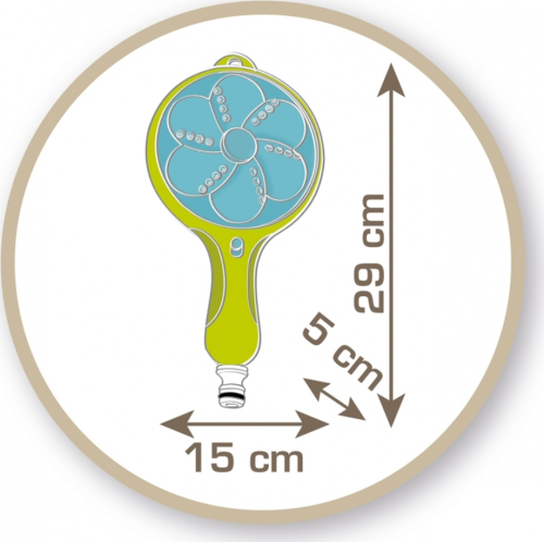 lze umístit na trávník jako podlahovou sprchu, držet ji jako ruční sprchu nebo zavěsit pomocí dodávané upevňovací spony na domeček kompatibilní se všemi domečky Smoby snadné připojení na standardní zahradní hadice (nejsou součástí balení) UV stabilní vysoce kvalitní plast odolný proti povětrnostním vlivům a vyblednutí Rozměry: 29,5 x 15 x 4,7 cm.