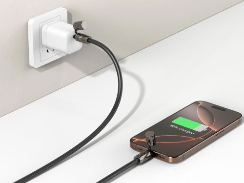 Tento popruh v sobě skrývá zabudovaný USB-C kabel s podporou rychlého nabíjení až 240W (PD), takže máte nabíjecí kabel vždy po ruce, aniž by zavazoval. Prémiové a designové zpracování kovových prvků ze zinkové slitiny a opletené šňůry o průměru 6 mm zajišťuje odolnost i elegantní vzhled.