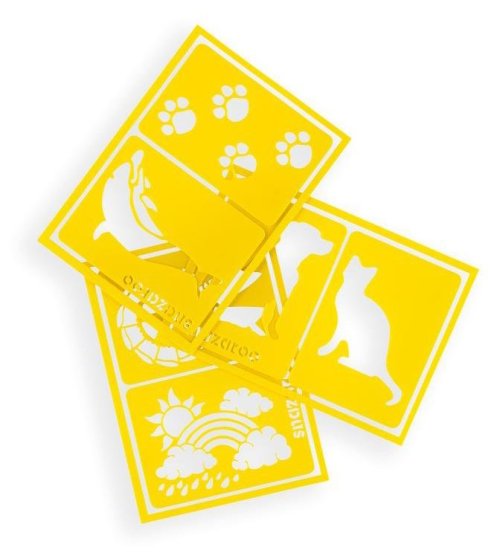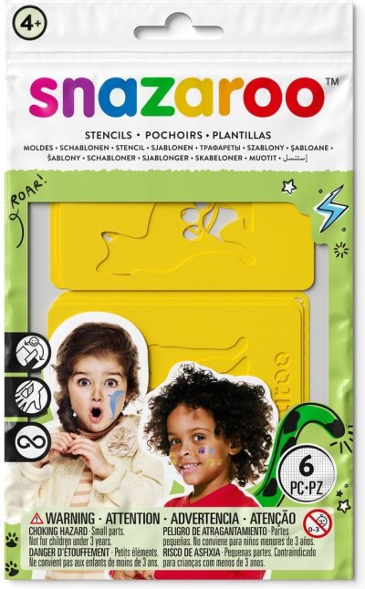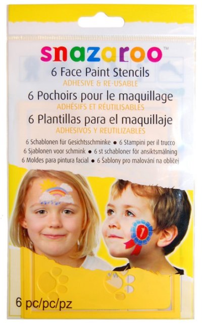tematicky zaměřené na zvířata, obsahuje však také duhu nebo ocenění skvělý doplněk pro malování na obličej a tělo samolepicí podklad udrží šablonu na místě pružný materiál se snadno přizpůsobí křivkám obličeje nebo rukou opakovaně použitelné a omyvatelné ideální pro použití s barvami na obličej a tělo Snazaroo