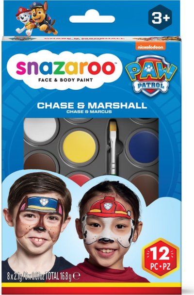 Sada kvalitních barev na obličej a tělo Snazaroo speciálně navržená pro fanoušky Tlapkové patroly .