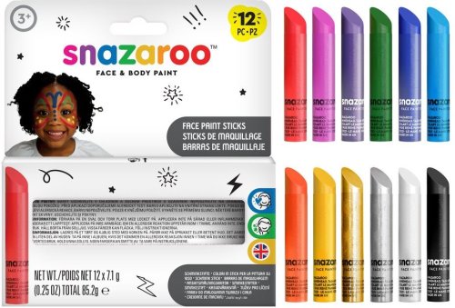 Velká sada barevných tyčinek ve tvaru tužek pro malování na obličej a tělo Snazaroo .