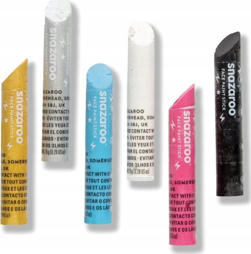 Sada 6 barevných tyčinek ve tvaru tužek pro malování na obličej a tělo Snazaroo .