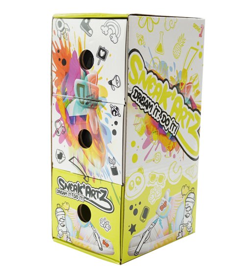 Vždy jste snili o tom mít tenisky, které nevypadají jako ostatní? S Sneak'artz si můžete vyrobit vlastní botu! Navrhněte a vytvořte svůj design se všemi přiloženými doplňky. Balení obsahuje: 2 tenisky, 1 třpytky, 6 dekoračních fixů (lze použít i jako foukací), plastické samolepky, samolepky, 2 přívěsky a seznam tenisek, kde si označíš, jakou tenisku máš. Nasbírej všech 24 druhů. Svou tenisku si můžeš pověsit třeba na batoh nebo klíče.