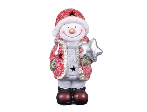LED dekorace v podobě sněhuláka v kabátku s čepicí s hvězdou. Je vhodná pro o období Vánoc. Pomůže navodit atmosféru všem milovníkům Vánoc. Dekorace je vhodně doplněna led světlem. Materiál: keramika. Vhodná do interiéru. Rozměry: délka 13, cm, hloubka 10 cm, výška 23 cm. Barva: mix barev.
