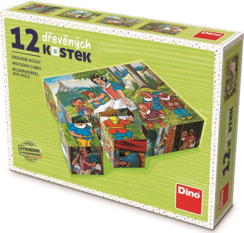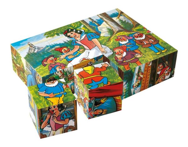 Skládejte spolu s dětmi a povídejte si příběh o tom, zda Sněhurka usne z otráveného jablíčka navěky nebo jí pomohou trpaslíci, anebo zakletou Sněhurku probudí krásný princ? Obrázkové kostky procvičí u nejmenších dětí představivost i jemnou motoriku prstů a rodiče zavzpomínají na tradiční pohádku svého mládí. Starší děti při skládání obrázků rozvíjí fantazii, orientaci a logické myšlení, a kostky motivují je k vyprávění příběhů. Kostky jsou dřevěné a v balení najdete 12 ks. Rozměr krabičky: 16 x 12 x 4 cm Vhodné pro děti od 3 let