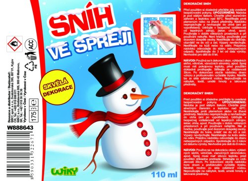 Sníh ve spreji pomáhá vytvořit kouzelnou vánoční atmosféru. Používá se k dekoraci oken, výkladních skříní, zrcadel, větviček vánočních stromků. Sprej musí mít pokojovou teplotu. Před použitím protřepat, stříkat ze vzdálenosti 30 cm. Nepoužívat na nábytek, textil, umělé hmoty a lakované povrchy. Obsah spreje je 110 ml. Velikost spreje: 17 cm Není hračka