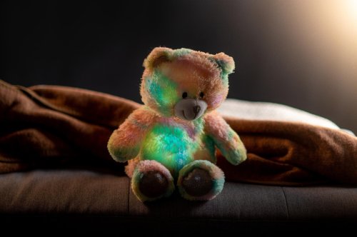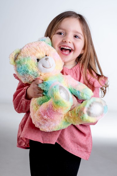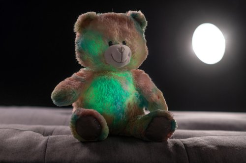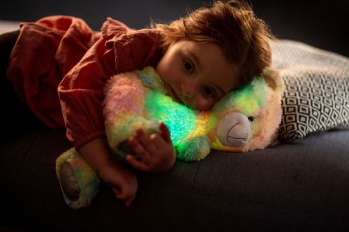 Roztomilý plyšový medvídek je vyroben z kvalitní jemné plyše. Tento plyšový kousek je ideálním dárkem! Medvídek Snílek duhový pomáhá dětem snadněji usnout. Po zmáčknutí tlapky hraje klidnou relaxační hudbu. Ve tmě svítí a mění barvy. Velikost medvěda: 40 cm Vhodné pro děti od 3 let