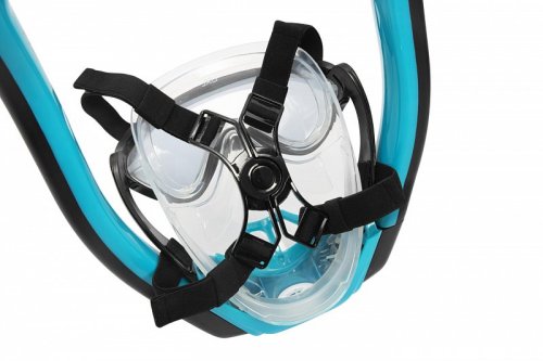 Kompletní šnorchlovací maska pro dospělé se dvěma šnorchly. Stačí nasadit a dýchat stejně jako na souši. Oddělené trubice pro nádech a výdech pro čerstvý vzduch při každém nádechu. Snadno nastavitelné popruhy, tónovaná skla a vysoce kvalitní silikon, který poskytuje pohodlné a bezpečné uchycení a schopnost vyrovnávat tlak. Koncovky Full Dry zabraňují vniknutí vody do šnorchlu. Rozměry: 21,5 x 37 x 9,5 cm. Věk: 14+