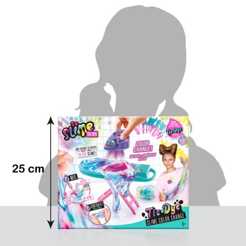 Balení je barevné a přehledně znázorňuje postup tvorby slizu v několika krocích: nejprve se do průhledného slizu přidávají barvy a třpytky, poté se hmota důkladně promíchá míchátkem a nakonec se sliz natahuje na žehlícím prkně a pomocí UV žehličky se aktivuje změna barvy. Tento interaktivní prvek podporuje kreativitu a fantazii dětí, které mohou experimentovat s kombinacemi vůní a barev. Rozměry balení jsou přibližně 25 cm na výšku, což je kompaktní velikost vhodná pro domácí použití i přenášení.