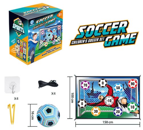 Pokud hledáte zábavnou hru pro své dítě a zároveň u něj už co nejdříve rozvíjet pohybové schopnosti a chuť ke sportu, je fotbalový trenažér Merco Soccer Game Indoor vhodný právě pro vás! Tato fotbalová sada obsahuje textilní terč s rozměry 150 x 100 cm, měkký míček vyplněný bavlnou, se suchými zipy na povrchu a průměrem 16 cm, dva plastové kolíčky do země, čtyři popruhy a čtyři háčky. Fotbalový trenažér můžete používat uvnitř i venku. Terč můžete jen položit na zem, ale díky očkům v rozích jej můžete i připevnit doma na zeď či zavěsit venku do branky. Výrobek není vhodný pro děti mladší 3 let! - sada: terč, míč, 2x kolík do země, 4x popruh, 4x háček - materiál: flanel, bavlna, suchý zip, plast - rozměry terče: 150 x 100 cm - průměr míče: 16 cm - pro indoor i outdoor použití - rozměry balení: 20 x 19 x 16 cm - hmotnost balení: cca 0,48 kg