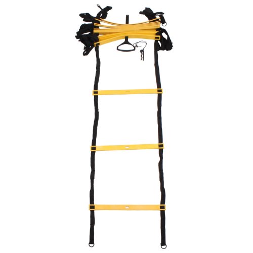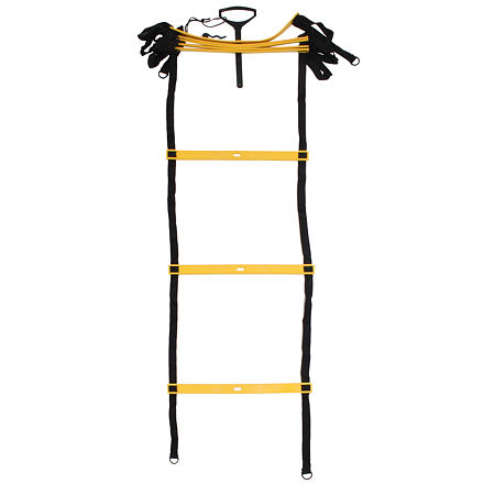 Agility žebřík Merco Soft slouží pro kondiční přípravu sportovců. Měkké příčky z termoplastické gumy žebříku jsou snadno nastavitelné pro přizbůsobení vzdálenosti mezi jednotlivými příčkami podle potřeb uživatele. Popruhy tohoto modelu jsou zakončeny “D“ očky, aby bylo možné proskakovačku ukotvit napevno do země. Unikátním vylepšením je madlo, které je možné protáhnout středem žebříku. Madlo pak slouží nejen jako nosič, ale zabraňuje i zamotání žebříku. U obou variant žebříku je šířka 43 cm. Upozornění: Agility žebříky neslouží v žádném případě k lezení, nýbrž ke cvičení techniky a rychlosti sportovců na zemi.