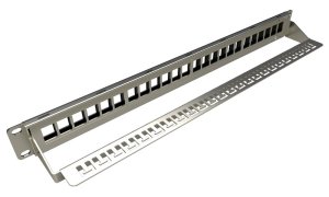 Patch panel Solarix s označením SX24M-0-STP-BK-UNI-N je univerzální neosazený patch panel, který je určen pro 24 stíněných i nestíněných keystonů Solarix SXKJ-xx-yyy-BK, SXKJ-xx-yyy-BK-SA a SXKJ-xx-yyy-BK-NA. Modulární provedení patch panelu umožňuje pohodlnou instalaci a díky vyvazovací liště, která je součástí dodávky panelu, i přehledné vyvázání a pevné uchycení datového kabelu přímo k tělu panelu. Tento patch panel je vybaven zemnícím drátem, který umožňuje jeho propojení se zemněním rozvaděče.