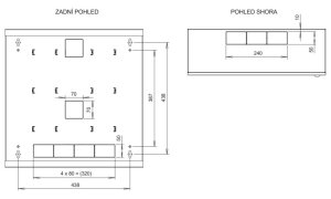 Zadní stěna obsahuje otvory pro montáž rozvaděče na zeď.