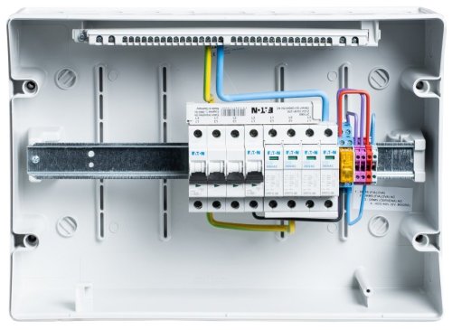 Vhodné kombinovat s rozvaděčem R-FVE-DC2T1-IKA, R-FVE-DC3T1-IKA pro stejnosměrnou část instalace a rozvaděči R-FVE-A40-2 pro zálohované okruhy s manuálním přepínačem (přemostění střídače), nebo rozvaděčem R-FVE-Z4 s proudovým chráničem, zásuvkami a jištěním.