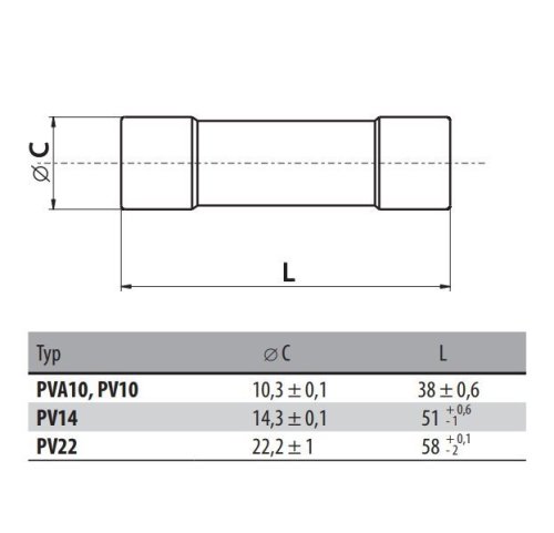 Válcová pojistka (výkonová pojistková vložka) pro pojistkový odpínač typu OPVP14.