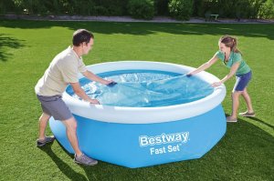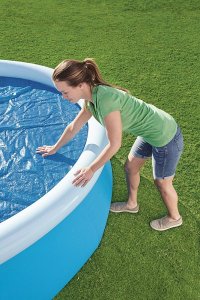Díky této solární plachtě na kruhový bazén zabráníte vniknutí nečistot do vašeho bazénu. Sluneční plachta využívá solární energii pro ohřátí vody v bazénu a brání úniku tepla. Vhodné pro bazény Fast Set a Steel Pro Max s průměrem až 305 cm. Materiál: PE. Rozměr krycí solární plachty: Ø 289 cm. Rozměry balení: 38 x 28 x 14 cm.