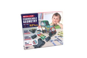 Solární geometrická stavebnice. Sada obsahuje 62 dílků včetně solárních panelů a motorového panelu. Doporučený věk od 8 let. Baterie nejsou součástí balení.