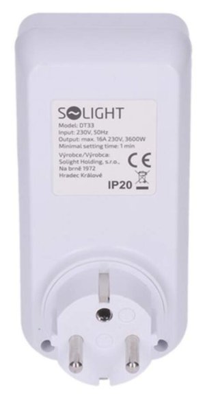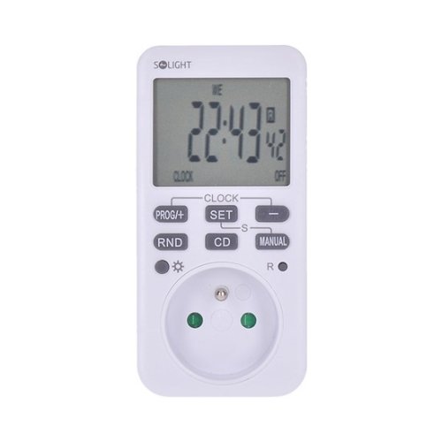 Digitální spínací hodiny pro nastavení spínaného času elektrické zásuvky. Přehledný, velký a podsvícený LCD displej. LED indikátor zapnutí. Automatický nebo manuální režim. 10 spínacích cyklů s minimálním rozlišením 1 minuta. 16 kombinací dní nebo skupin dní. Funkce letního času. Odpočítávací funkce max. 99h, 59min, 59s. Možnost nastavení náhodného spínání po dobu 10-31minut v časovém rozmezí 6:00h až 18:00h. Zabudovaná nabíjecí baterie pro uchování hodnot, výdrž až 100h. Dětské pojistky. Napájení 230V/16A, 3600W. Provozní teplota -10 + 40°C. EAN 8592718026417