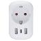 cestovní adaptér s uzemněním a vestavěnou USB nabíječkou výhodné spojení dvou zařízení v jednom pro obyvatele Evropy navštěvující Anglii a země s UK standardem, zásuvky typu G Schuko uzemnění zásuvky, použitelné pro univerzální vidlice typu E/F vhodné i pro spotřebiče s neuzemněnou 2-kolíkovou vidlicí typu C zásuvka s dětskými pojistkami, 100 - 250V / max. 13A, max. 2990W / 230V 2x USB-A + 1x USB-C, DC 5V - max. 2,4A, max. 12W adaptér nemění napětí ani jiné elektrické parametry barva: bílá