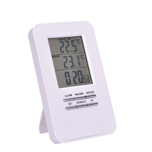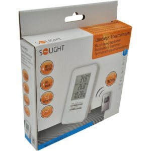 Měření vnitřní teploty -9°C až +50°C. Měření venkovní teploty -50°C až +70°C. Paměť minimálních a maximálních teplot. 1 bezdrátový senzor (součástí balení). Zobrazuje čas a má funkci budík. Hlavní jednotka 2 x AAA (LR03) baterie (není součástí balení). Senzor 2 x AAA (LR03) baterie (není součástí balení). EAN 8592718012229