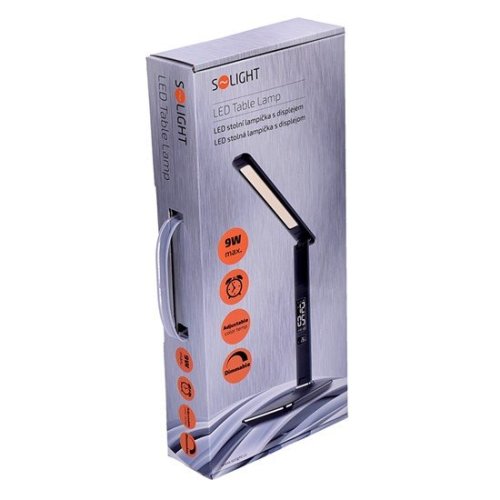Solight WO45-B LED stolní lampička s displejem, 9W, volba teploty světla, kůže, černá