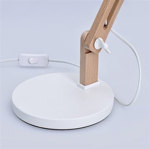 kovová stolní lampa Falun s dřevěnými rameny matná povrchová úprava světlený zdroj: E27/25W max. (dodáváno bez zdroje) rozměry stínidla: 15,5 x 16,5cm průměr základny: 17cm délka ramen: 10 + 25 + 25cm …