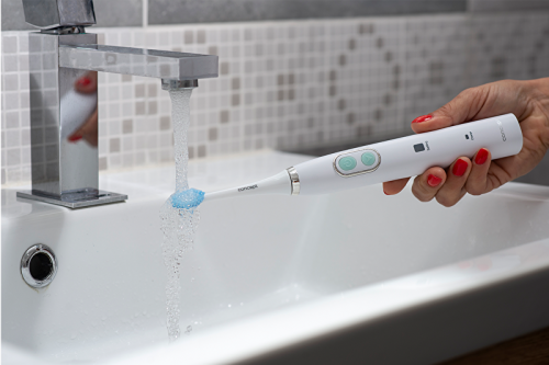 Sonický zubní kartáček přináší vysoce efektivní péči o zuby a dásně. Model ZK4040 je uzpůsoben pro dospělý chrup a nabízí několikanásobně vyšší účinnost než při manuálním čištění. Sonické čištění zubů je vhodné prakticky pro každého, včetně osob s rovnátky, korunkami, fazetami a zubními náhradami. Je účinnější v čištění mezizubních prostor a mohou ho používat i osoby s citlivými zuby a dásněmi. Pravidelným používáním předchází tvorbě parodontózy a snižuje zarudnutí a krvácení z dásní. Dokonalý výsledek Sonický kartáček ZK4040 pracuje na principu jemných ultrazvukových vibrací. Hlavice kartáčku vibruje rychlostí 38 000 kmitů za minutu, což je optimální rychlost pro perfektní odstranění zubního plaku a zároveň šetrné ošetření dásní. Rozpohybované štětiny kartáčku se lépe dostanou do mezizubních prostor a skvěle si poradí i se skvrnami na sklovině. Režimy čištění Kartáček je vybaven 10 režimy čištění, které zahrnují péči o jazyk, bělení, klasické čištění, jemné čištění a masáž. Kartáček je vybaven paměťovou funkcí, díky které budete mít s každým novým čištěním automaticky nastavený režim, který jste použili naposledy. UV sterilizátor Součástí modelu ZK4040 je UV sterilizátor, který díky ultrafialovému světlu zlikviduje až 99,9 % bakterií na hlavici kartáčku a zabrání jejich dalšímu množení. Během několika minut budete mít svůj kartáček dokonale čistý a připravený k dalšímu použití. Pohlídá vám čas Kartáček na zuby ZK4040 je vybaven inteligentním časovačem, který vám pohlídá délku čištění. Je nastaven na 2 minuty, které pro čištění zubů doporučují zubní lékaři. Časovač je rozdělen na 4 časové intervaly po 30 sekundách, abyste měli přesnou kontrolu nad délkou čištění v jednotlivých částech úst. Vyměnitelné hlavice Součástí základního balení jsou dvě vyměnitelné kartáčové hlavice: Daily Clean pro každodenní čištění a Sensitive pro citlivé zuby a dásně. Díky systému nasazení Click-in hlavice vyměníte snadno a rychle jemným zacvaknutím. Abyste zachovali vysokou míru efektivity čištění zubů, doporučujeme hlavice každé 3 měsíce měnit. Kvalitní zpracování Sonický zubní kartáček ZK4040 vyniká moderním designem a kompaktním tvarem, díky kterému perfektně padne do ruky. Nabízí stupeň ochrany IPX7, takže ho můžete opláchnout pod tekoucí vodou. Kartáček je vybaven kvalitní Li-Ion baterií, která se dobíjí pomocí USB kabelu.