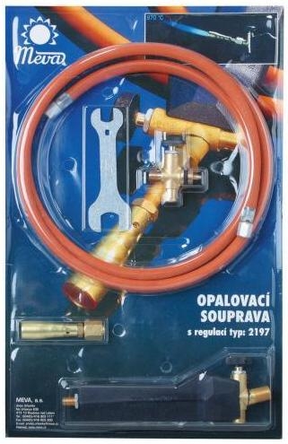 Opalovací souprava 2197 na propan-butan s kulatým hořákem je určena pro kutily k řemeslným pracem menšího rozsahu, opalování starých nátěrů a různé druhy ohřevu. Je připojena pomocí ventilu a hadice k propan-butanové láhvi, navíc poskytuje možnost měkkého pájení cínem a pájení drobných předmětů na tvrdo stříbrnou pájkou.