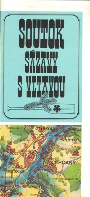 Dekorativní kreslená vodácko-turická mapa soutoku Sázavy s Vltavou a okolí v oblasti od Čerčan po Davli, v měřítku 1:45 000 kreslíře Marko Čermáka.