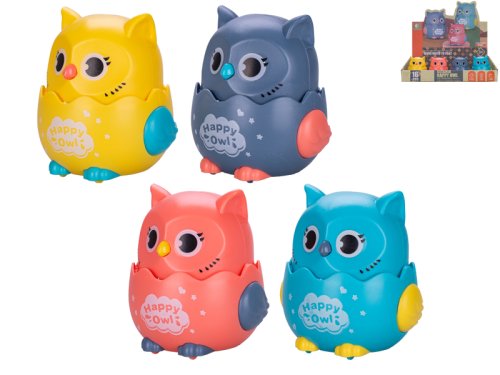 Sova 7 cm po stlačení jezdící - mix barev (žlutá, šedá, růžová, modrá)