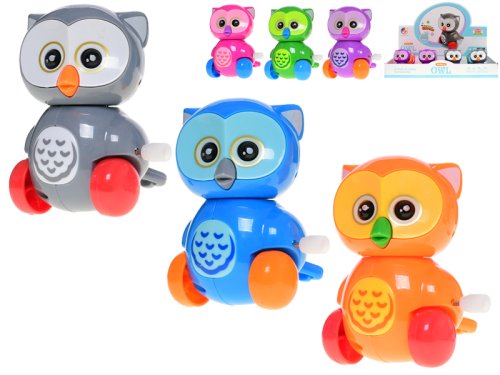 Sova 8 cm na klíček po natažení jezdící - mix barev (šedá, růžová, modrá, zelená, oranžová, fialová)