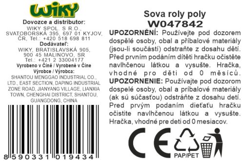Sova roly poly. Přesné rozměry 8x5x5 cm.