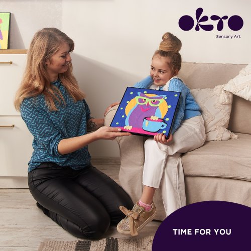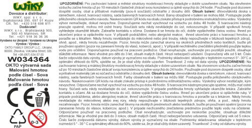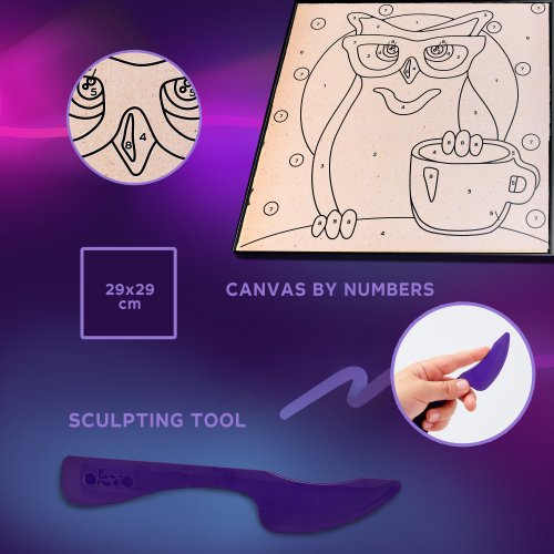 Sova výtvarná sada malování hmotou podle čísel. Samotvrdnoucí hmota (air clay), malování prsty. Velikost plátna 29x29 cm. Obsah balení - plátno, obrázkový návod, tvarovací nástroje, samotvrdnoucí hmota.