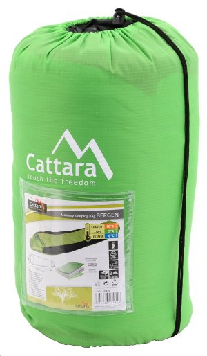 Cattara Bergen 0°C představuje mumiový spací pytel s univerzálním využitím a vysokým komfortem díky svým rozměrům 230 x 80 / 55 cm. Vyniká také svými malými rozměry v balení 21 x 34 cm, díky čemuž je velmi snadno přenosný. Hodí se tak pro stanování, výlety do přírody nebo treking a skvěle náhradí i přikrývku v karavanech, kempech či na chalupě. Dokonale kopíruje tělo, má nejlepší tepelně izolační vlastnosti a je vybaven ztahovací kapucí chránící hlavu.