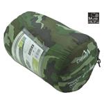 Spacák Army má kamuflážní vzor Woodland složený ze 4 barev - hnědé, černé a 2 odstínů zelené. Toto známé maskování proslavila Americká námořní pěchota - Navy SEALs. Spací pytel je vybaven 3 vrstvami - vnější a vnitřní materiál je polyesterová taffeta 170T a izolační vrstva se skládá z dutých polyesterových vláken s gramáží 200 g / m2. Komfortní teplota použití spacího pytle je 20 °C, extrémní teplota je poté 10 °C. Hodí se tedy spíše pro letní sezónu.